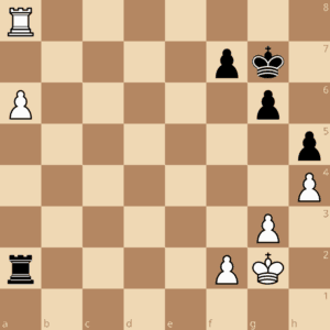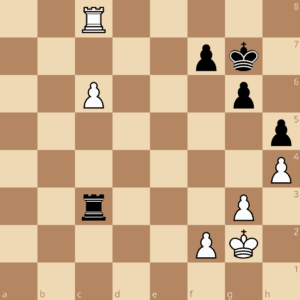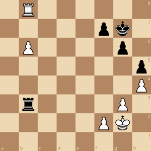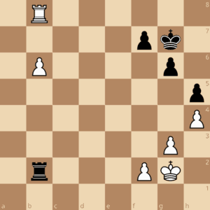 In der Trainingseinheit am 21.Januar wird es noch einmal um dieses häufig vorkommende Turmendspiel gehen: Am Königsflügel haben beide Seiten drei Bauern, jeweils auf f2-g3-h4 bzw. f7-g6-h5, die Könige stehen auf g2 bzw. g7. Weiß hat einen Mehrbauern am Damenflügel, der schwarze Turm steht hinter dem Bauern, der weiße Turm davor. Bei der letzten Trainingseinheit haben wir uns Stellungen angeschaut, in denen Weiß den Freibauern bis zur siebten Reihe vorgezogen hat, so dass der weiße Turm nicht mehr ziehen kann.