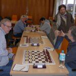Vom Kampfverlauf lief es für uns gut an, als erstes sicherten Oliver (Ein c3-Sizilianer mit 2.-d5 gg. Wolfgang Grohde an Brett 5 ) und Matthias (Ein durchaus ambitioniertes Englisch mit dem c4-d3-e4-Zentrum gg. Jörg Harm an Brett 7) ein Remis. Vielleicht mit Weiß ein Quentchen zu wenig, aber beide hatten sehr erfahrene Gegner und somit ging das irgendwie in Ordnung.