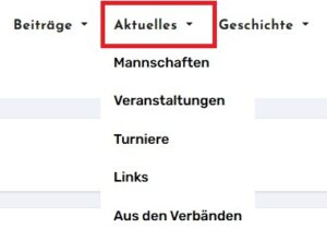 6) Unter dem Menüpunkt „Aktuelles“ findet man Informationen zu unseren Mannschaften, unseren Veranstaltungskalender, unsere Turniere (inklusive Anmeldemöglichkeit), eine Liste von (hoffentlich) interessanten Links und vier sogenannte RSS-Feeds (SVSH, SJSH, DSB und DSJ).