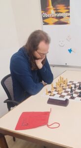 Entgegen meiner Schwarzmalerei fanden sich dann doch 18 Teilnehmer ein, um sich dieser Kuriosität des Schachsports zu widmen. Allerdings, genauer waren es 17. Möglicherweise aufgrund einer kurzfristigen Fehlleistung des Progammanwenders, hatte sich mit Andreas Steffen ein Name in die Meldeliste geschlichen, der da nicht hinein gehörte. Das wurde aber leider erst bemerkt, als die Runde 1 bereits im Gange war. Einfachheitshalber ließen wir Andreas als Attrappe, Dummy oder Platzhalter im Wettbewerb. Kein Problem.