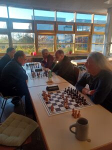 Gespielt wurden 5 Runden (30/1,25 + 30). Da darf man sich keine größeren Ausrutscher leisten. Das gelang am Ende am besten Wolfgang, der lediglich zwei Remis zuließ und zwar gegen den Reinfelder Manrico Marcic und gegen den Reinfelder 2. Vorsitzenden Oliver Scharf.