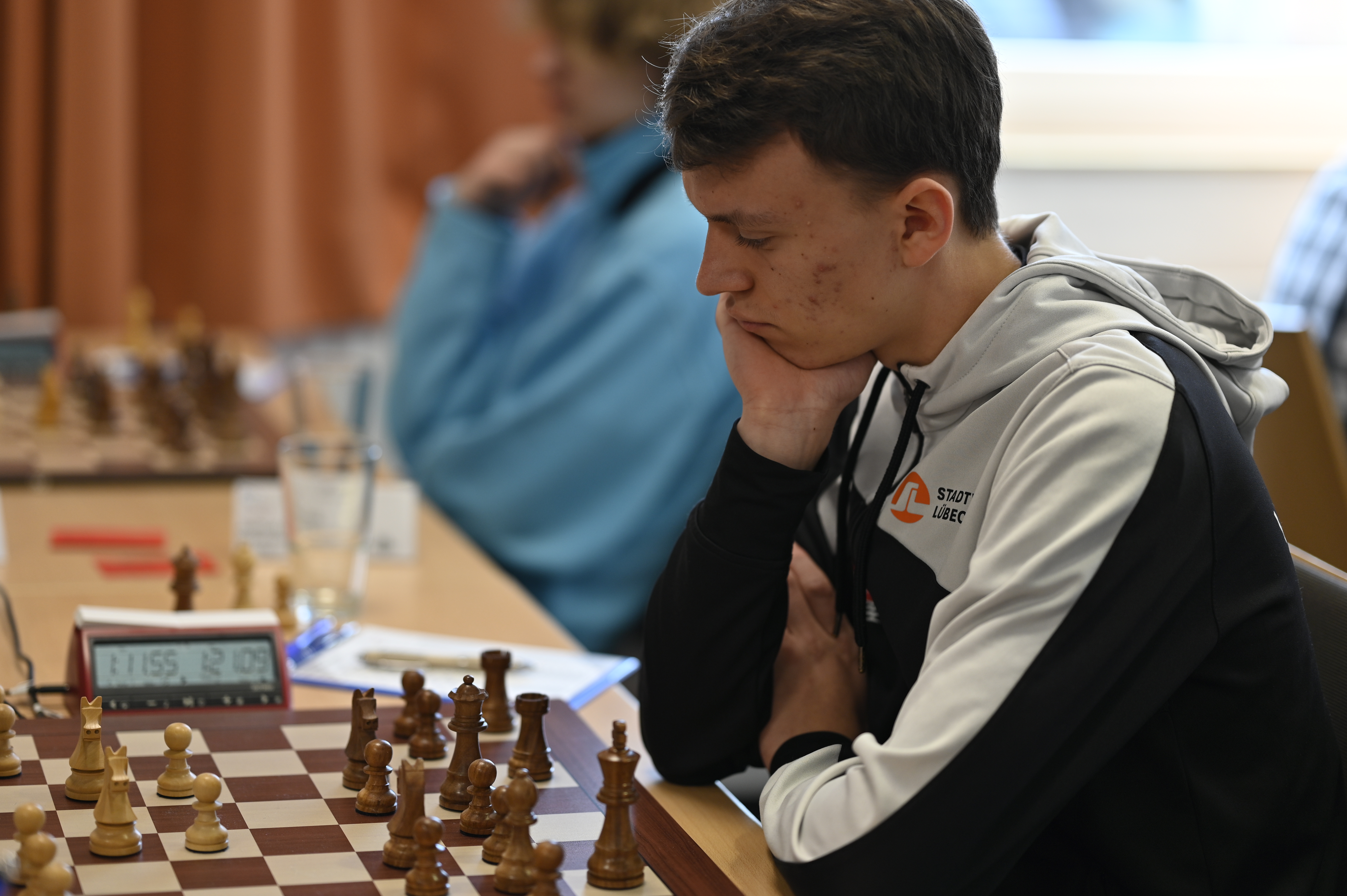 Valentin und Timo waren in der Delegation die Neulinge, die zuvor noch kein großes Turnier gespielt hatten und dementsprechend noch viele Erfahrungen sammeln mussten. Sie schlugen sich beide mit jeweils vier Punkten durchaus respektabel und zeigten bereits ein ausgeprägtes Verständnis für das sinnvolle Nutzen der Bedenkzeit, was in diesem Alter lobend hervorgehoben werden muss.